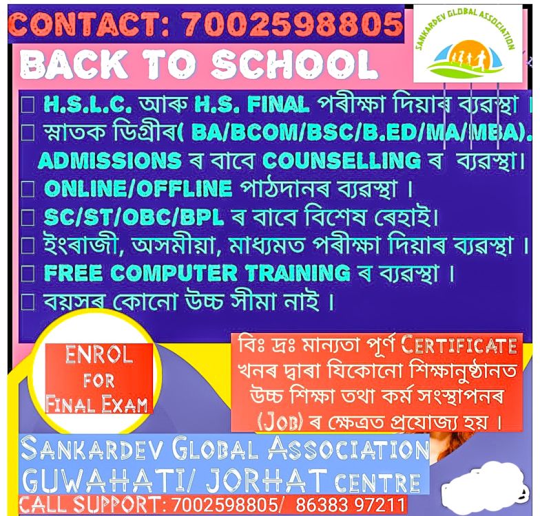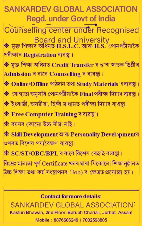 Sankardev Global Association has a vision of educating the poor and dropout students.